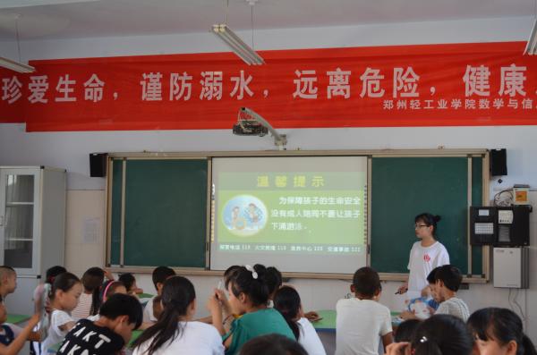 以关注青少年生命安全为落实点,我校组建多支暑期社会实践小分队前往河南省濮阳市台前县、郑州高新区、平顶山郏县、安阳市安阳县、鹤壁市淇县、荥阳市乔楼镇等多地市县进行防溺水安全教育服务,为暑期少年防溺事故做出预防,提高青少年儿童防溺意识,远离危险。同时提高实践志愿者对生命的重视和珍惜思想。
