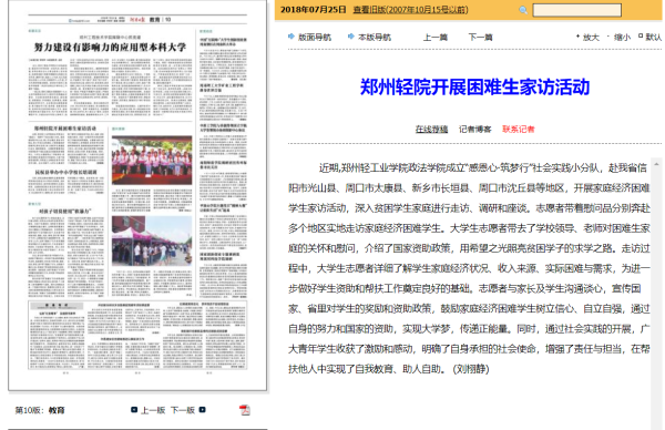 该服务队已被河南日报报道(郑州轻院开展困难生家访活动: