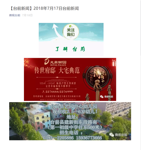 【台前新闻】2018年7月17日台前新闻:https://mp.weixin.qq.com/s/59z3zoba66bxTcVerrpbJg)
