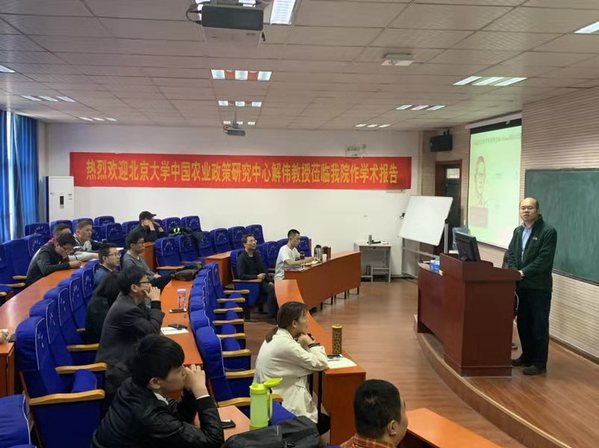 10月11日上午,北京大学现代农学院、北京大学中国农业政策研究中心研究员解伟教授应邀来我校作学术报告。相关专业教师及博士、研究生参加。