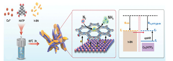 近日,材料与化学工程学院杜淼教授和张治红教授团队针对电催化产氨和产氢存在的催化剂活性低、稳定性差和转化机理不清晰的问题,在材料和能源领域Top期刊《Advanced Science》和《Small》上发表高水平论文。异质结工程在半导体器件领域具有广泛的应用,通过利用不同材料的界面结构可实现材料的微观调控和优化,充分发挥不同材料的特性。受此启发,杜淼教授团队利用异质结工程,通过利用半导体金属框架材料(MOF)和硼纳米片形成p-n型异质结,并以等离子体处理方式在异质结材料中引入缺陷,从而形成高效电催化氮气还原的催化剂,实现的高氨气产率(28.26 ± 2.27 µg h−1 mgcat.−1)和法拉第效率52.92 ± 1.83%处于国际领先水平。该项工作发表在Adv. Sci. 2023, 10, 2205786(影响因子15.1,中科院一区,TOP期刊)。论文链接:https://onlinelibrary.wiley.com/doi/10.1002/advs.202205786