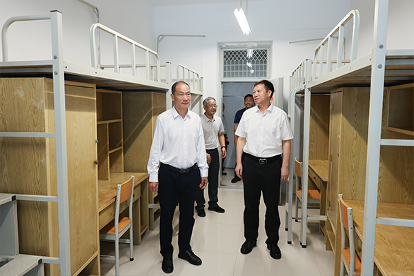 校领导一行率先来到一站式师生服务大厅,实地查看并询问建设情况。来到教学楼、体育馆等场所,了解开学条件保障及教学设备准备情况。来到学生公寓,实地查看宿舍维修改造、检查环境卫生状况等,并细致询问了新生住宿安排的相关事宜。走进食堂,对食品原材料的采购渠道、储存条件、加工制作过程以及食堂的就餐环境等进行了严格检查,着重强调了食品安全与卫生的重要性。