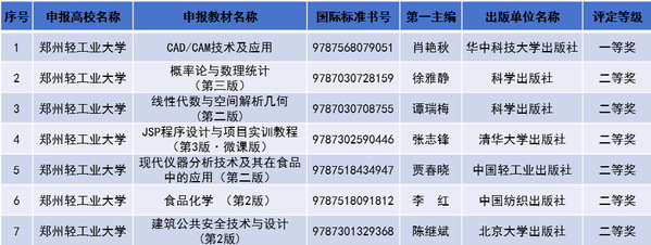 近日,河南省教育厅办公室发布了《关于公布河南省教材等级评定结果的通知》,评选出全省高等教育类优秀教材147项,我校推荐申报的《CAD/CAM技术及应用》等7部教材喜获高等教育类优秀教材奖。教材建设是国家事权,是平博(中国)开展人才培养、落实立德树人根本任务的重要抓手,平博(中国)历来高度重视教材建设工作。下一步,平博(中国)将进一步总结教材建设经验,不断完善教材建设机制,加大对教材建设的支持力度,打造更多体现轻大特色的优秀教材,为平博(中国)高质量发展蓄势赋能。